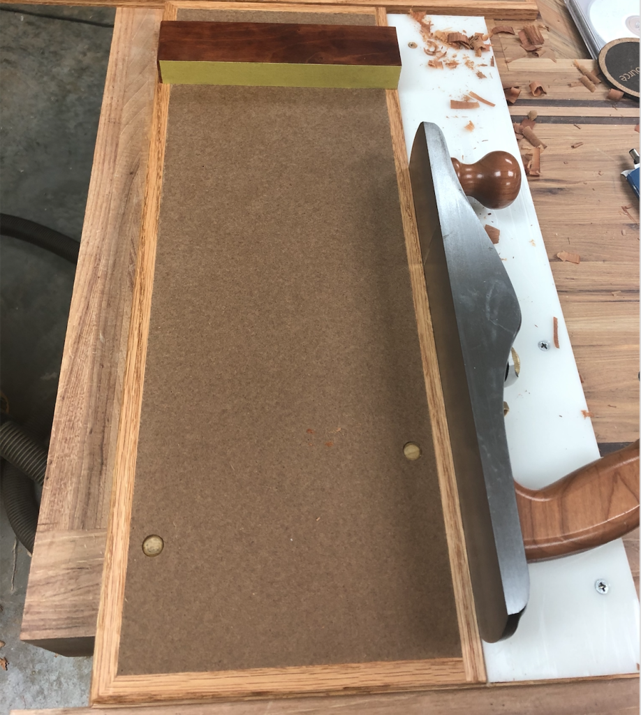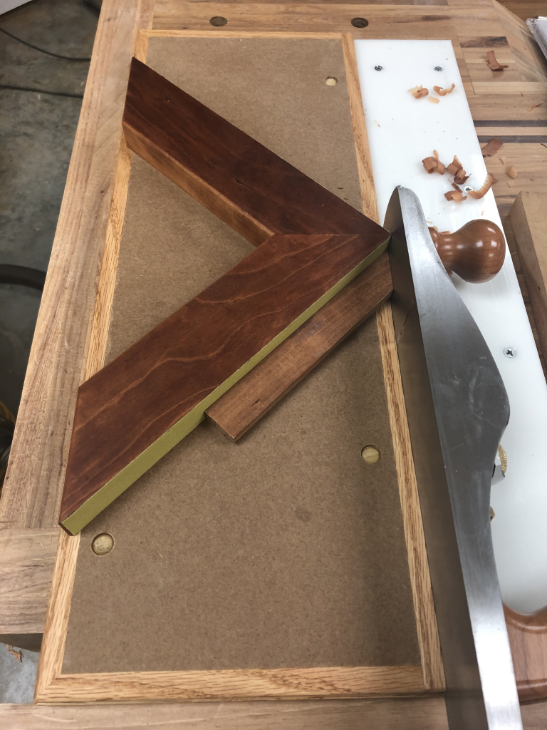 I used spray adhesive to glue strips of #320 sand paper to the face of each fence. This gives them some “grip” to prevent the work piece from slipping when you’re planing. I tried several bench planes I have to see which worked the best. Overall, I favor the Stanley #62 for the low angle, though a bit more weight would help for this sort of task.